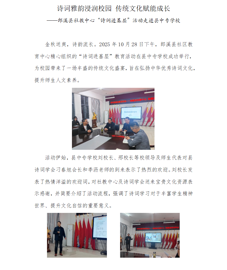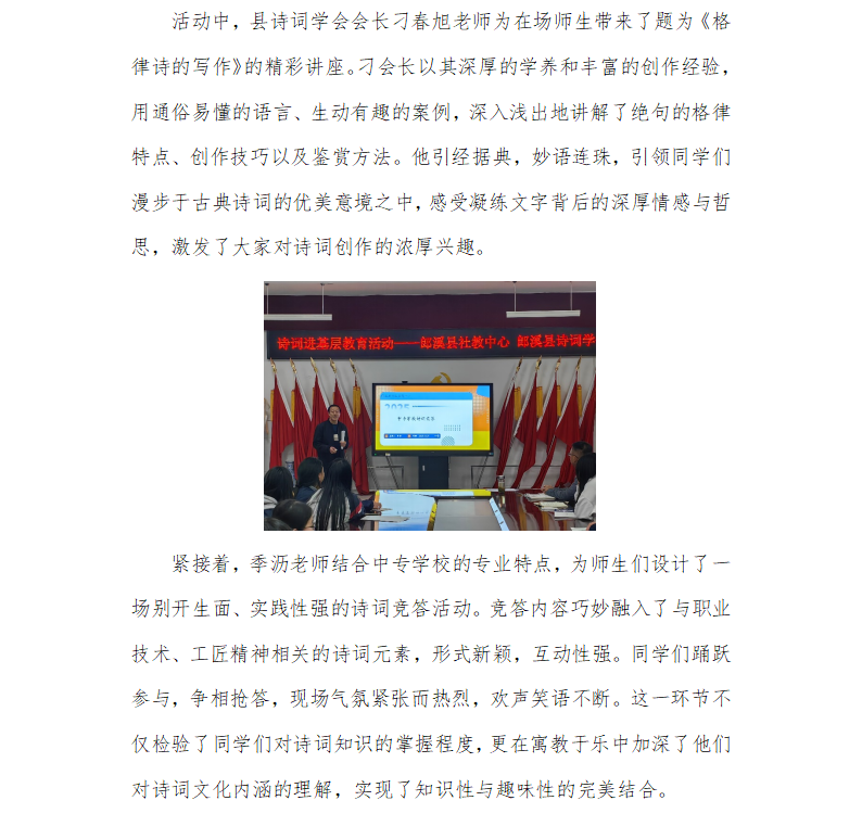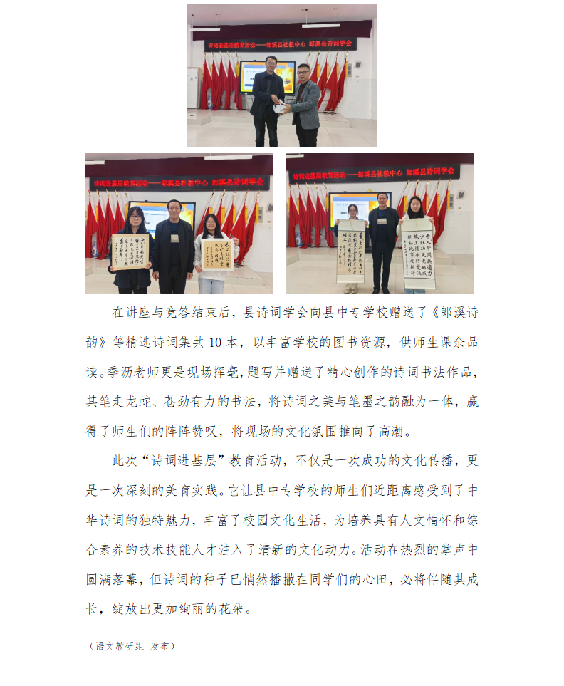郎溪县社教中心“诗词进基层”活动走进县中专学校
