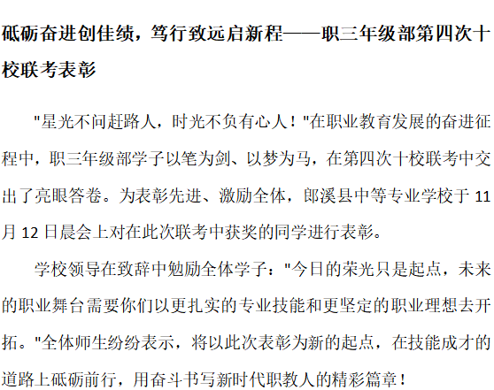 砥砺奋进创佳绩,笃行致远启新程——职三年级部第四次十校联考表彰