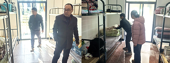 12 月 8 日,郎溪中专学校总务处赵根财校长带领工作人员深入学生公寓,开展内务整理专项检查工作,重点对床铺整理、卫生间洗漱用品摆放等细节进行逐一核查。