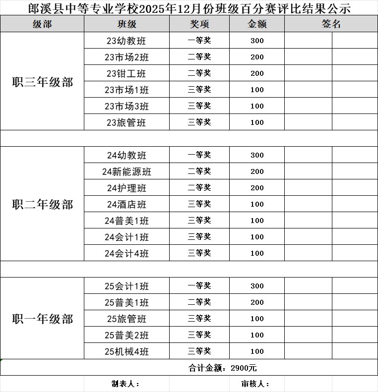 2025-2026学年第一学期12月份文明班级、宿舍评比