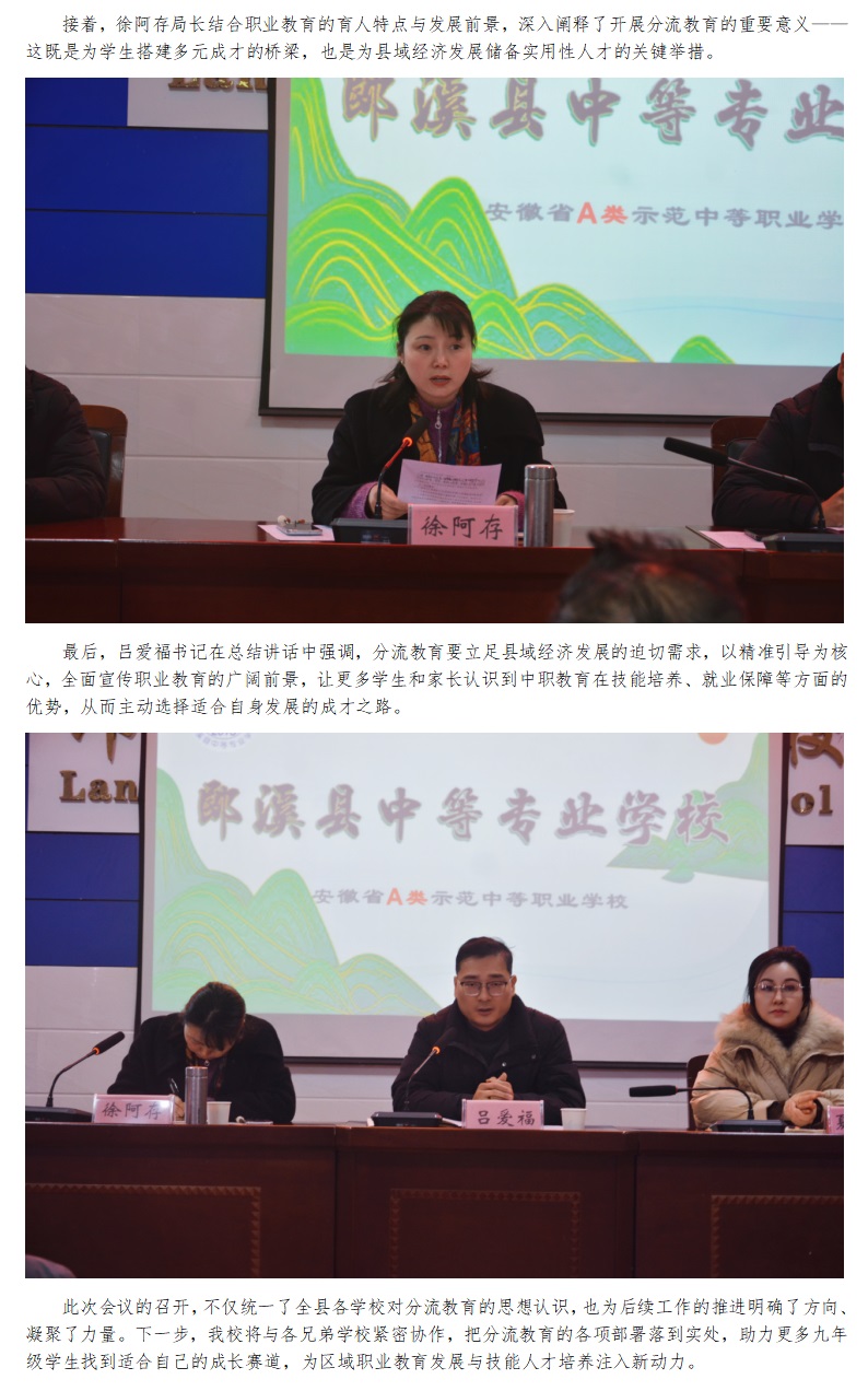 郎溪县25-26学年九年级分流教育工作会议在郎溪中专校召开