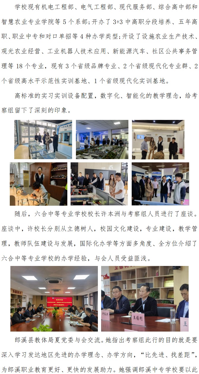 郎溪县职业教育调研组赴南京六合中专参观学习