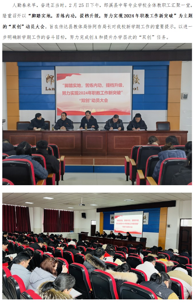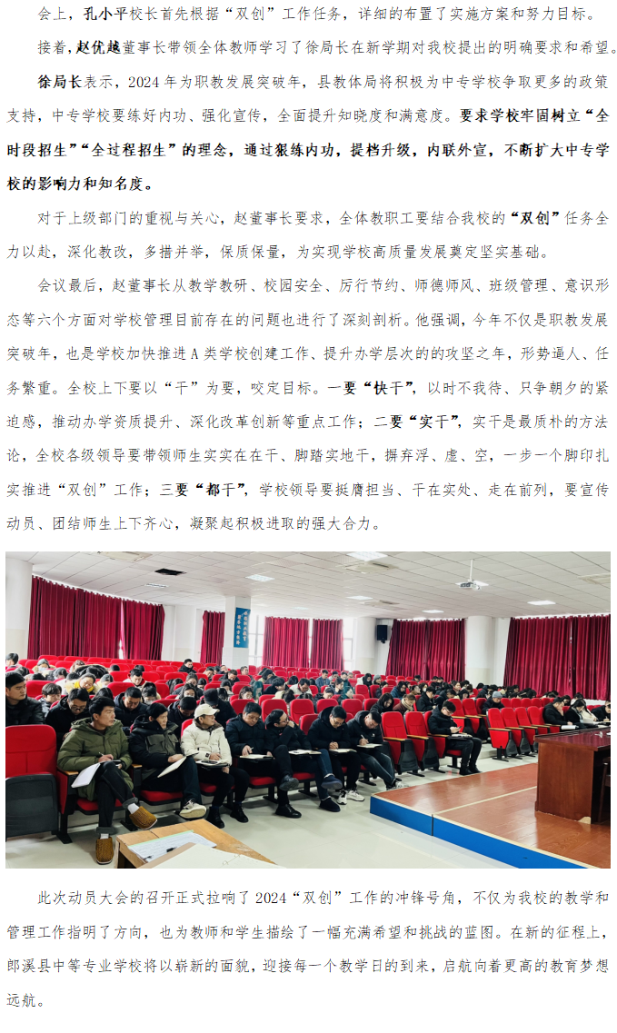 郎溪县中等专业学校召开2024年“双创”动员大会