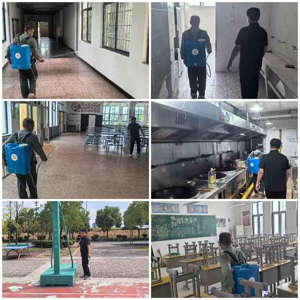 工作人员对教学楼、宿舍、食堂、篮球场等重点区域的设施设备进行全面细致检查,及时维修更换存在安全隐患的设计。同时,专业消杀人员采用科学配比的消毒药剂,对食堂、教室、走廊、卫生间等公共区域进行全覆盖喷洒消杀,确保不留死角。此次行动有效筑牢校园安全防线,为师生营造安全、健康的学习生活环境,迎接新学期的到来。