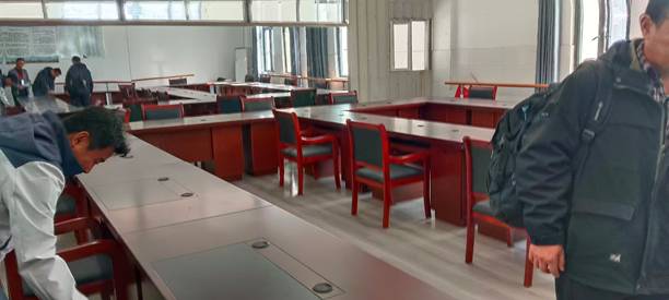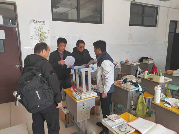 2025 年 10 月 29 日下午,郎溪县教体局组织对郎溪县中等专业学校课桌椅采购项目开展验收,学校总务处负责人赵根才校长以及供应商江西样佳工贸有限公司全程参与。