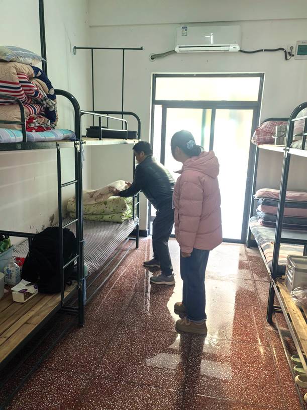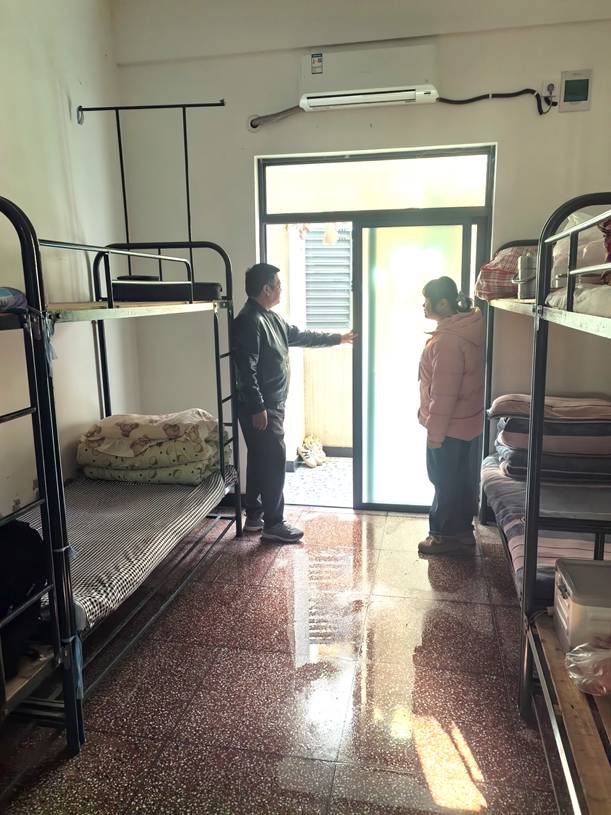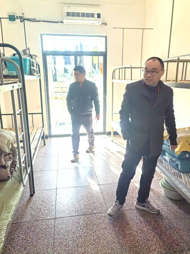 12 月 8 日,郎溪中专学校总务处赵根财校长带领工作人员深入学生公寓,开展内务整理专项检查工作,重点对床铺整理、卫生间洗漱用品摆放等细节进行逐一核查。