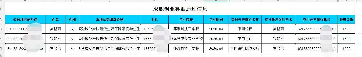 2026年郎溪县中等专业学校应届毕业生就业创业补贴申请通过情况公示