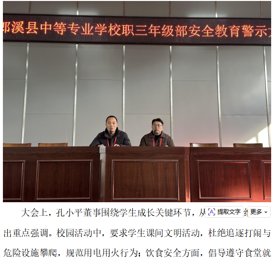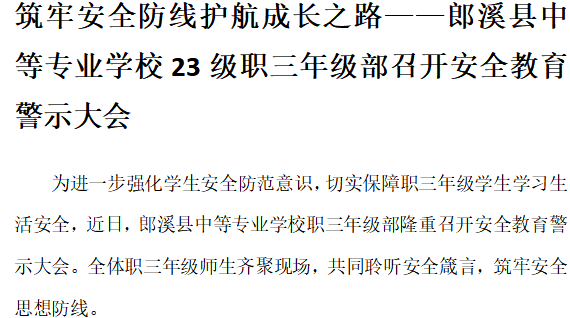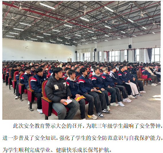 筑牢安全防线护航成长之路——郎溪县中等专业学校23级职三年级部召开安全教育警示大会