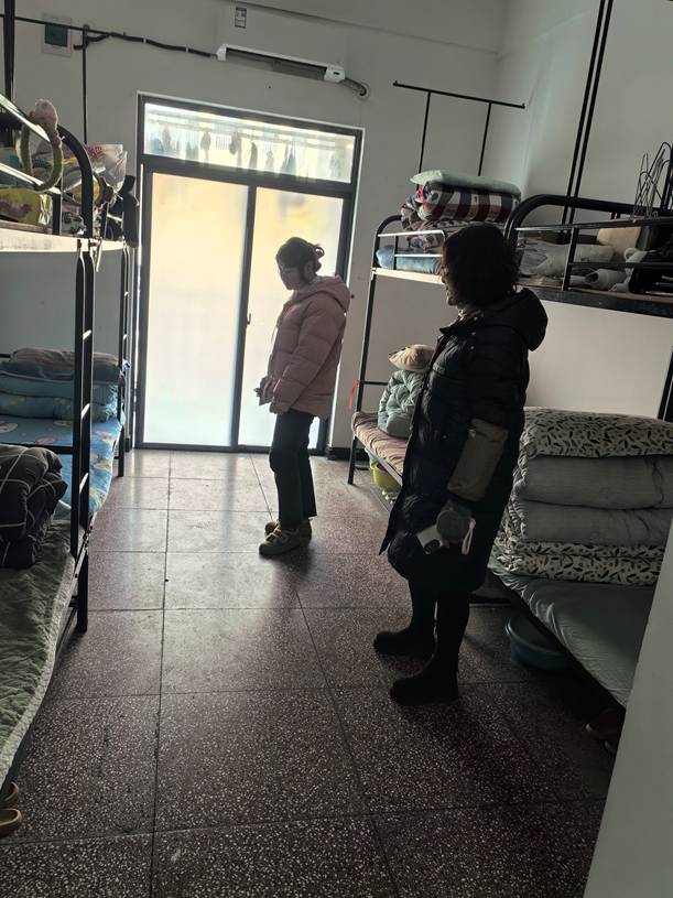 近日,郎溪中专总务处组织开展 2026 年1月份文明宿舍评比活动。活动以精细化管理为核心,围绕整理、安全、素养等标准,总务处工作人员深入 2 栋学生公寓全面检查,重点检查评比地面卫生、床铺整理、收纳摆放、卫生间环境等情况。