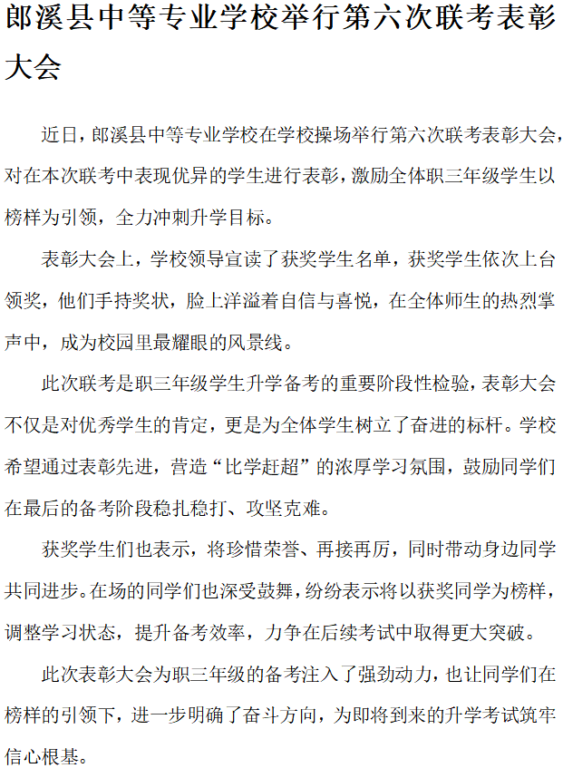 郎溪县中等专业学校举行第六次联考表彰大会