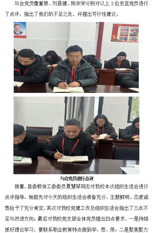 郎溪县中等专业学校党支部召开2025年度 组织生活会和民主评议党员会议