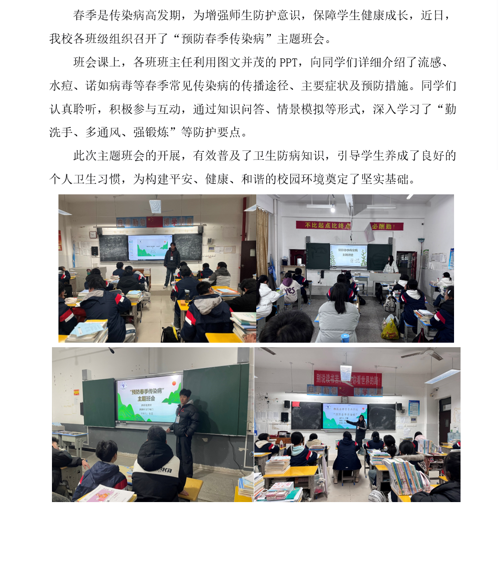 我校职一级部开展“预防春季传染病”主题班会